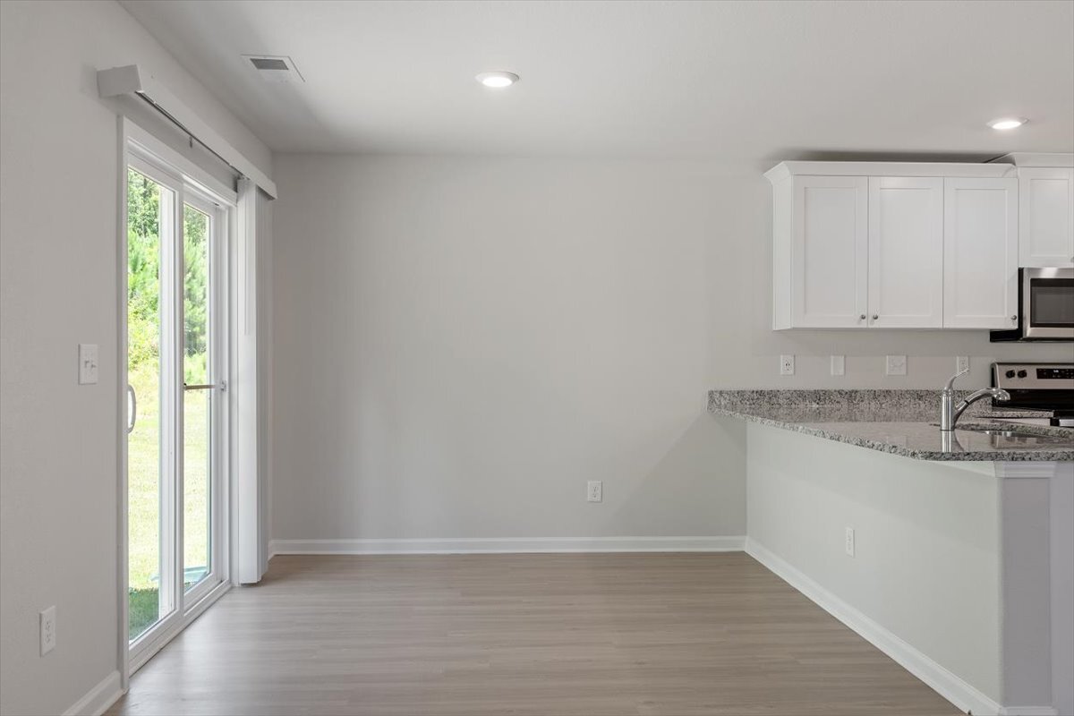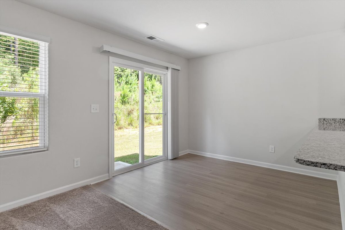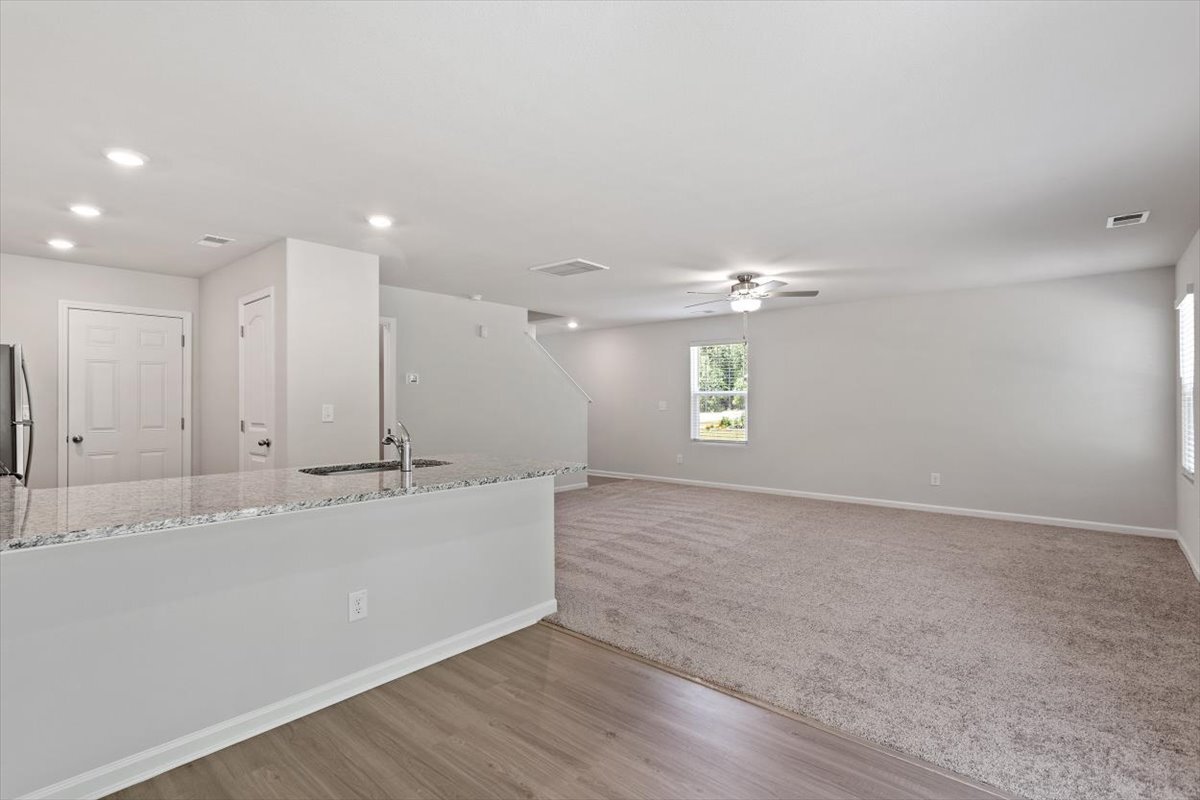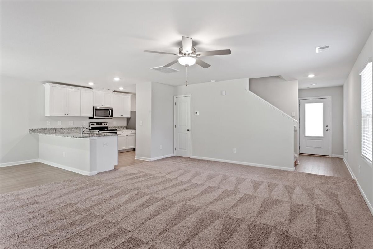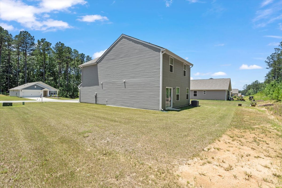 Welcome to this like-new 3-bedroom, 2.5-bathroom home with a 2-car garage in a desirable, vibrant, and well-maintained community! You'll be greeted by an abundance of natural light and a thoughtfully designed open floor plan that provides both comfort and functionality for everyday living and entertaining. The main level features luxury vinyl plank flooring that adds warmth and durability, complemented by granite countertops throughout the home for a polished, upscale look. The spacious living room offers plenty of space to relax and flows seamlessly into the kitchen and dining area looking to the backyard, creating a central hub perfect for hosting gatherings. The kitchen is a showstopper, boasting white 42-inch cabinets, stainless steel appliances, and generous counter space—ideal for both meal prep and casual dining. Upstairs, retreat to the primary suite with a vaulted ceiling, your private haven featuring walk-in closets and a luxurious en-suite bathroom with a separate shower. Two additional bedrooms share a well-appointed full bathroom, offering flexibility for family, guests, or a home office setup. Outside, you'll find the backyard, providing plenty of room for outdoor dining, play, gardening, or simply enjoying your own private retreat. Residents of this community enjoy access to fantastic amenities, including a playground, picnic area with grill, and a dog park, making it ideal for families and pet lovers alike. The location offers easy access to nearby destinations—just minutes from Downtown Angier, Fuquay-Varina, Lillington, and Campbell University—giving you the best of small-town charm with close proximity to shopping, dining, and schools. Don't miss the opportunity to own this beautifully maintained home that combines modern finishes, thoughtful design, and a convenient location. Schedule your showing today! The seller has never occupied the home.